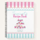 Un lindo y original cuaderno de espiral para añadir tus recetas favoritas, pasteles, quequitos, postres y más, con rayas rosas y azules que le dan un aspecto de panadería.