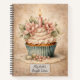 Una ilustración de estilo vintage de un cupcake decorado con glaseado de crema suave, flores delicadas y una vela encendida. Tonos pastel sutiles y fondo texturizado crean una composición romántica y shabby chic inspirada en temas clásicos de postres y flores.
