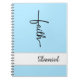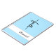 This notebook is shown with a faithful Faith Cross print and is shown in a light blue color with an accent strip with a custom sample name.