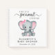 Un libro de invitados para la ducha de una niña con "A Sweet Little Peanut Is On Her Way" escrito en una mezcla de tipografía gris suave y un guión elegante, y una acuarela rosa pastel de un elefante de una niña. Personalice el nombre de la futura madre y la fecha de la ducha en una simple tipografía gris.