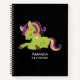 Un cuaderno de espiral personalizado con una imagen de unicornio de estilo Frankenstein. Colores púrpura y verde. Qué lindo.