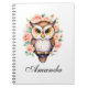 Cuaderno Cute Lechuza de Acuarela y Rosas Frondosas