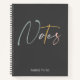 Un cuaderno lindo y elegante. Con un fondo gris oscuro, la palabra Notas está en tipografía de letra cursiva en colores verde claro, gris, amarillo y rosa. Debajo, en tipografía gris claro moderna dice "cosas que hacer".
