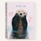 Este cuaderno de nutria adorable seguramente hará que tu hijo disfrute aprendiendo a escribir, tomar notas, escribir en su diario o hacer bocetos. Este diseño moderno y chic presenta una nutria linda en un estanque, con un suave fondo rosa y corazones rojos. El estanque también tiene ondas gráficas azules en el agua junto con las cañas sutiles. Utilice la función de personalización para agregar un nombre o iniciales.