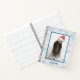 Un cuaderno de espiral personalizado con una fotografía de la naturaleza de una nutria linda sujetando su cara con sus patas. Llevando un gorra de navidades rojos dibujados a mano. Patrón de fondo de copo de nieve.