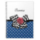 Mejora tu estilo de niñera con este lindo cuaderno de puntas de polka azul y blanco con un moderno arco de chevron negro y blanco y un rosa de cinta roja de moda. Este retro azul y rojo combina con el diseño moderno y se puede personalizar añadiendo el nombre de su chica adolescente. Imagen plana impresa, NO cinta roseta ni arco.