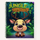 Personalize the back cover of this adorable "Jungle Welcome" notebook! Featuring a unique whimsical wild baby Reindeer cartoon graphic tropical Fawn animal character in a lush nighttime forest scene, inviting you into a world of imagination and creativity. This Doe design is perfect for woodland safari lovers, nature wildlife fans, and anyone who enjoys cute Deer and cozy zoo vibes.