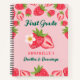 Cute Strawberry Custom Name Pink Kids Grade School Sketch Notebook. personalice agregando nombre y grado escolar y el título deseado para hacer un libro de sketch único para niños.