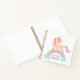 Un lindo y bonito unicornio con el pelo rizado y rosa exuberante encima de un puente arcoiris que atraviesa dos nubes. Personalice con el nombre en la plantilla de texto proporcionada para hacer un cuaderno o un cuaderno de bocetos único para ella.