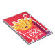 A cute and colorful cartoon illustration of a red French fries carton with a happy kawaii smiling face. The design features a floating red heart and the romantic funny pun quote "I only have FRIES for you". The image has a white sticker border, making it perfect for Valentine's Day greeting cards, fast food lovers, and humorous romantic gifts. Isolated design.