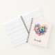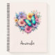 Spiral notebook with a beautiful illustration. A heart-shaped bouquet of flowers in pastel blue, green, purple and yellow. With a lovely blue butterfly hovering in front..