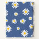 Maravilloso patrón de flores de margarita flotando en un fondo azul. Plan, simple, alegre y lindo. Añade texto o imágenes; hazlo tuyo.