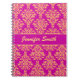 Cuaderno Damasco elegante del oro y de la magenta de las