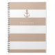 Cuaderno de Anchor con rayas Marrón Taupe y Blanco. Personalice la portada con o sin texto.
