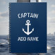 Cuaderno de anclaje náutico del capitán del barco personalizado. Suministros de oficina personalizados con tema marítimo. Añadir su propio nombre o monograma. Plantilla de tipografía de época con ancla de barco. Color de fondo azul marino, blanco o personalizado. Idea de regalo para papá, padre, tío, abuelo, etc. Crea tu propio cuaderno de bitácora, diario, diario, agenda, etc. Vela y obsequios temáticos en barco.