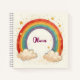 Este cuaderno personalizado presenta un atractivo arcoíris de acuarela con estrellas doradas brillantes y nubes esponjosas.