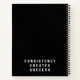 Este cuaderno minimalista en blanco y negro presenta un diseño audaz y manuscrito de “Hustle” en la portada y un poderoso recordatorio en la parte posterior: