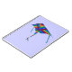 Fotografía de una cometa colorida volando sobre fondo azul cielo. Personalizable de color de fondo.