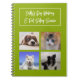 Cuaderno de cuidador de mascotas o paseador de perros. Ayuda al amante de los animales a llevar un registro de su negocio. Cuaderno verde brillante con espiral y cuatro fotos de gatos y perros en la portada. Utilice las fotos de muestra si lo desea, o reemplácelas con sus propias imágenes favoritas. Personalice con un título en fuente de letra manuscrita moderna en la parte superior. Utilice para organizar un pequeño negocio.
