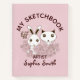 El diseño del producto presenta un conejito y un gatito adorables que sostienen flores rosas. Este bonito dibujo animado de animales hace un cuaderno de dibujo único y lindo con texto personalizado para niños.
