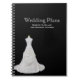 Cuaderno espiral elegante hecho en blanco y negro. Foto preciosa de un vestido nupcial blanco contra un fondo del negro azabache. El texto blanco es completamente adaptable. Personalice el texto para leer lo que usted quiere. Perfeccione para el planeamiento agitado de la novia.