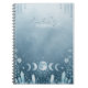 Elegante cuaderno celestial azul helado con tonos plateados, fases lunares y detalles brillantes. Un diseño perfecto inspirado en el invierno para escribir en un diario, tomar notas o regalar en temporada.