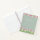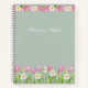 Un hermoso cuaderno en espiral que presenta tulipanes rosados suaves y narcisos blancos alegres dispuestos en elegantes bordes florales. El fondo verde suave salvia resalta las delicadas flores de acuarela, mientras que el nombre personalizable añade un toque personal. Perfecto para escribir, trabajar o diario, y un regalo encantador para maestros, estudiantes, compañeros de trabajo o cualquier persona que ame las flores frescas de primavera.
