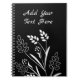 Arte floral de hojas blancas sobre fondo negro y texto personalizable