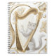 Una cubierta de cuaderno bellamente equilibrada que presenta un gato sereno tocando una arpa, enmarcado en elegante detalle dorado. Diseñado para aquellos que aprecian la papelería artística y tranquila.