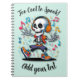 Desata tu creatividad espeluznante con este cuaderno energético de Halloween! Con un esqueleto bailando breakdance con auriculares y zapatillas y la divertida cita “¡Demasiado genial para asustar!”, es perfecto para notas escolares, garabatos o planes de Halloween. ¡Personalízalo con tu nombre en la portada!