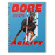 Un Pinscher negro enérgico del Doberman realiza los polos de la armadura en el cuaderno del diseño de la agilidad. Modifique la cubierta para requisitos particulares inferior con el nombre o la opción de su perro del texto. Grande para las notas del entrenamiento o del seminario o no perder de vista su expediente de la demostración de perros.