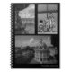 Cuaderno con tres fotografías de la fuente de París, del funcionamiento de Kyoto, y del campus de Oxford.