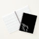 Dimensiones: 8,5" l x 11" w Recuento de páginas: 60 hojas, 120 páginas 60 libras. texto duradero papel liso Cubiertas delanteras y traseras laminadas, blanco liso dentro Elección de 6 colores para la espiral Elección de 8 diseños para las páginas compatibles con CPSIA