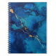 Este cuaderno presenta un rico diseño de mármol de tinta azul profundo con texturas fluidas y líneas de flujo doradas llamativas que se mueven naturalmente a través de la cubierta. Los tonos azules audaces crean una sensación de profundidad y enfoque, mientras que los acentos dorados añaden un acabado refinado y artístico.