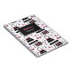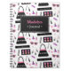 ¡Un cuaderno de moda y elegante para el fashionista! Usando elementos de la moda de los cosméticos, el maquillaje y los complementos tienen gusto del bolso con el estampado de zebra, rimel, esmaltes de uñas, pendientes de la estrella, pican sombras de las gafas de sol, el peine, los lápices labiales y los lustres del labio, cepillo y se ruborizan caja de la paleta. ¡Femenino en tonalidades rosadas, negras y púrpuras sobre un fondo blanco, este diseño es grande para los chicas de los tweenes de las edades, adolescencias y arriba! Personalice con el nombre del chica.