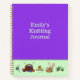 Diario morado de punto con título personalizado en la parte delantera. Con la opción opcional de papel gráfico, un tejedor puede crear sus propios diseños de color en cada página. Una buena manera de practicar personalizado Fair Isle o tejido varado. Los gráficos no son específicamente de tejido, pero un principiante puede disfrutar de la práctica. O elija otra cosa con líneas o páginas de cuadernos de esbozo. Las agujas de punto y los hilados con cestas hacen un borde a lo largo de la parte inferior. Los portátiles tienen tres tamaños.