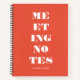 Escribe todo con este cuaderno naranja rojizo moderno que presenta la frase "Notas de reunión".