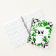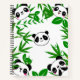 Hojas verdes exuberantes esparcidas alrededor de los pandas, creando una escena natural y animada. El bambú da la sensación de un hábitat forestal para los pandas, añadiendo un toque terroso, enfatizando la naturaleza juguetona de los pandas rodeados de su entorno natural. El uso de verde vibrante y blanco le da una estética fresca, limpia y divertida.