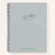 Cuaderno simple en espiral gris polvoriento. Caligrafía en la portada, color de fondo que cubre ambos lados con un pequeño corazón negro en la parte posterior. Perfecto para notas de boda, hacer planes y guardar recuerdos. Kimberly Brett.