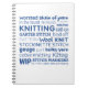 Este práctico cuaderno presenta un collage de términos y abreviaturas comunes de tejido como: fundido, puntas, K2tog, en redondo, manómetro y estiramiento de medias. ¡Este cuaderno es un regalo para cualquier tejedor!