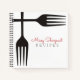 Sencillos tenedores negros y texto de color personalizado en este cuaderno de libros de cocina personal, perfecto para mantener la colección de recetas.