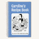 El gracioso Chiste Personalizado muestra a una cocinera que trabaja duro en la cocina mientras su esposo o pareja se relaja en el sofá. Libro de recetas de carátulas personalizadas de Cook. Fondo azul.