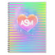 Este cuaderno brillante y colorido presenta un patrón de cuadros de arcoíris con un corazón cromado mágico de arcoíris y tu monograma completo en la parte superior. Sus páginas con renglones tipo "college" y encuadernación en espiral son perfectas para tomar notas, dibujar y mantenerse organizado. Para personalizar este diseño, ingresa la inicial de tu apellido para la letra del medio y edita las otras dos letras para las iniciales de tu nombre y segundo nombre. Haz clic en "Personalizar" para ver cómo se ve y, para hacer más ediciones, haz clic en la "Herramienta de diseño" para obtener más opciones, también hace un bonito regalo.
