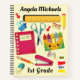 Este cuaderno tiene una portada divertida para que un estudiante escriba todas sus notas para tres clases. El diseño de la portada consiste en material escolar y puede ser personalizado cambiando el nombre que aparece en ella así como el grado. Agregue este bloc de notas a sus suministros de regreso a la escuela.