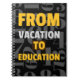 ¡Transición de estilo con este cuaderno de "De vacaciones a educación"! Perfecto para la temporada de regreso a la escuela, es un diseño divertido y relacionable para estudiantes y profesores que van de la diversión de verano a las vibraciones de las aulas.