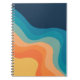Olas de estilo retro ilustracion geométrico con rayas amarillas, naranjas, azules, azul marino y turquesa