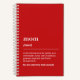 Cuaderno en espiral rojo moderno "Te Amamos Mamá" que incluye una definición de estilo diccionario de Mamá, Mami, Mamá o Madre y los nombres de los niños debajo. Puedes usar las plantillas de texto para cambiar el texto, para cambiar el color de fondo ingresa a la Herramienta de Diseño. Tipografía blanca minimalista sobre fondo rojo intenso. Hace el regalo perfecto con un toque personal para la mejor mamá del mundo.
