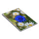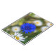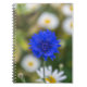 Un cierre hermoso encima de la fotografía de un cornflower azul imprimió en la cubierta de un cuaderno.