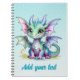 Conoce a nuestro amigable dragón bebé en un fondo soñador azul aqua con puntos blancos suaves. Este cuaderno pastel mágico es perfecto para niños que aman las criaturas fantásticas y las aventuras. ¡Personalízalo con un nombre para un toque extra especial!