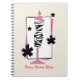 Un cuaderno espiral que ofrece un ilustracion de una cebra y de un maniquí rosado de la forma del vestido. Personalice con su nombre.